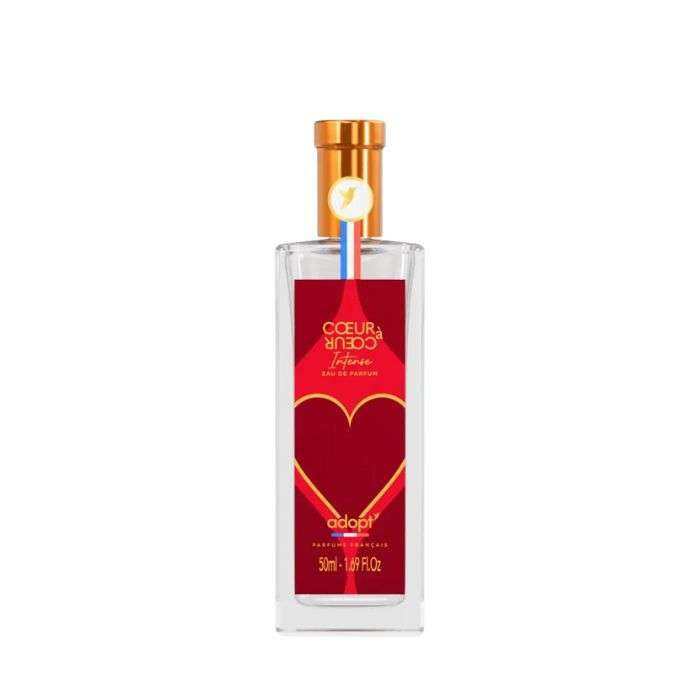 Cœur à Cœur d’Adopt, une eau de parfum florale et fruitée, idéale pour séduire. Formule végane.