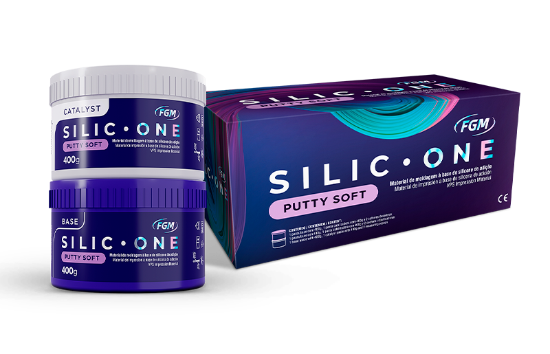 SILIC ONE PUTTY SOFT :Empreinte primaire d implants de composants prothétiques ,de restaurations indirectes de prothèses dentaires ,d arcades édentées ,de prothèses partielles amovibles de facettes et de couronnes sur dents