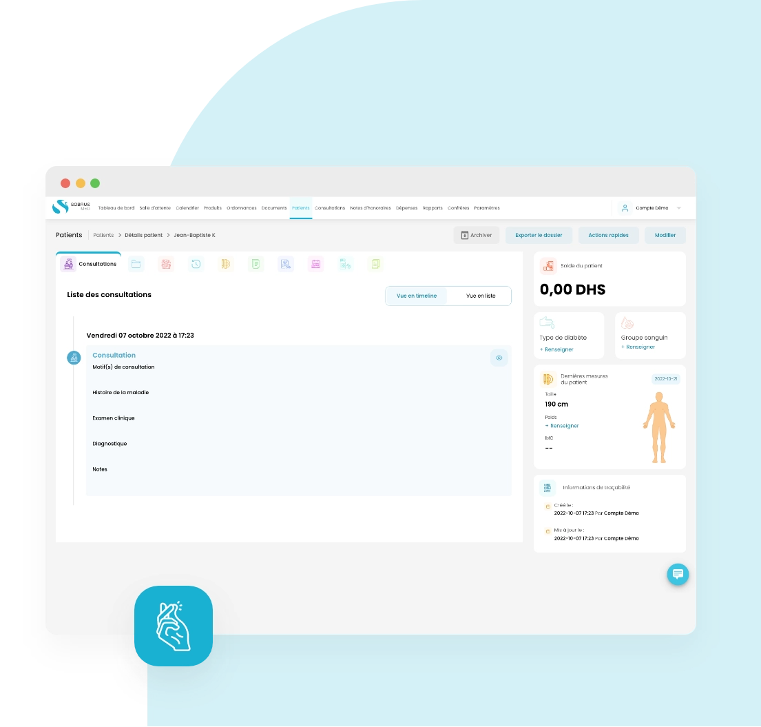 Il vous offre différents avantages pour une gestion efficace et intelligente de votre cabinet médical.
